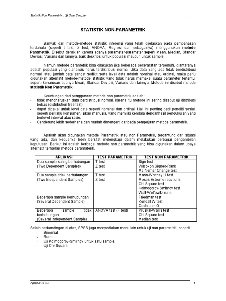 Contoh soal statistika non parametrik pdf. Oleh karena itu, uji z dapat digunakan utuk menguji data yang sampelnya berukuran besar. Sebelum iklan diberikan, terdapat 50 orang yang membeli barang tersebut dan 150 orang tidak membeli. Uji kruskal wallis adalah salah satu uji statistik non parametrik yang dapat digunakan untuk menguji perbedaan yang signifikan lebih dari 2 kelompok. Dari sekelompok karyawan itu ada 18 orang diambil secara random, selanjutnya diwawancarai, kapan akan mengambil cuti hamil.