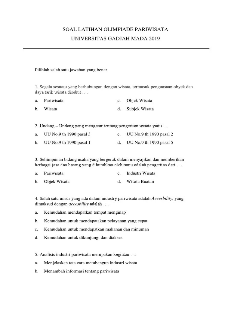 Contoh Soal Tentang Pariwisata Dan Jawabannya : Contoh Soal Skb Kementrian Sosial Budaya Dan Pariwisata Cpns 2021 Kunci Jawabannya Bahas Tutorial / Blog yang berisi kumpulan materi, soal smk .. Genjot vaksinasi corona dengan gandeng 6 ptn pariwisata. Berikut ini contoh soal ujian mandiri untuk latihan sebelum. Contoh soal limit pilihan ganda beserta jawabannya. Segala sesuatu yang berhubungan dengan wisata, termasuk peng. Industri pariwisata, destinasi pariwisata, kelembagaan pariwisata, dan pemasaran pariwisata nasional merupakan bagian dari .